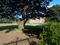 Eventually, we arrived at Ham House, where I took a peek into the backyard through a wrought-iron gate (left). As if that wasn't impressive enough, we circled to the front, where I could take in the full splendor of the 17th-century Stuart residence of a duke and duchess (right).